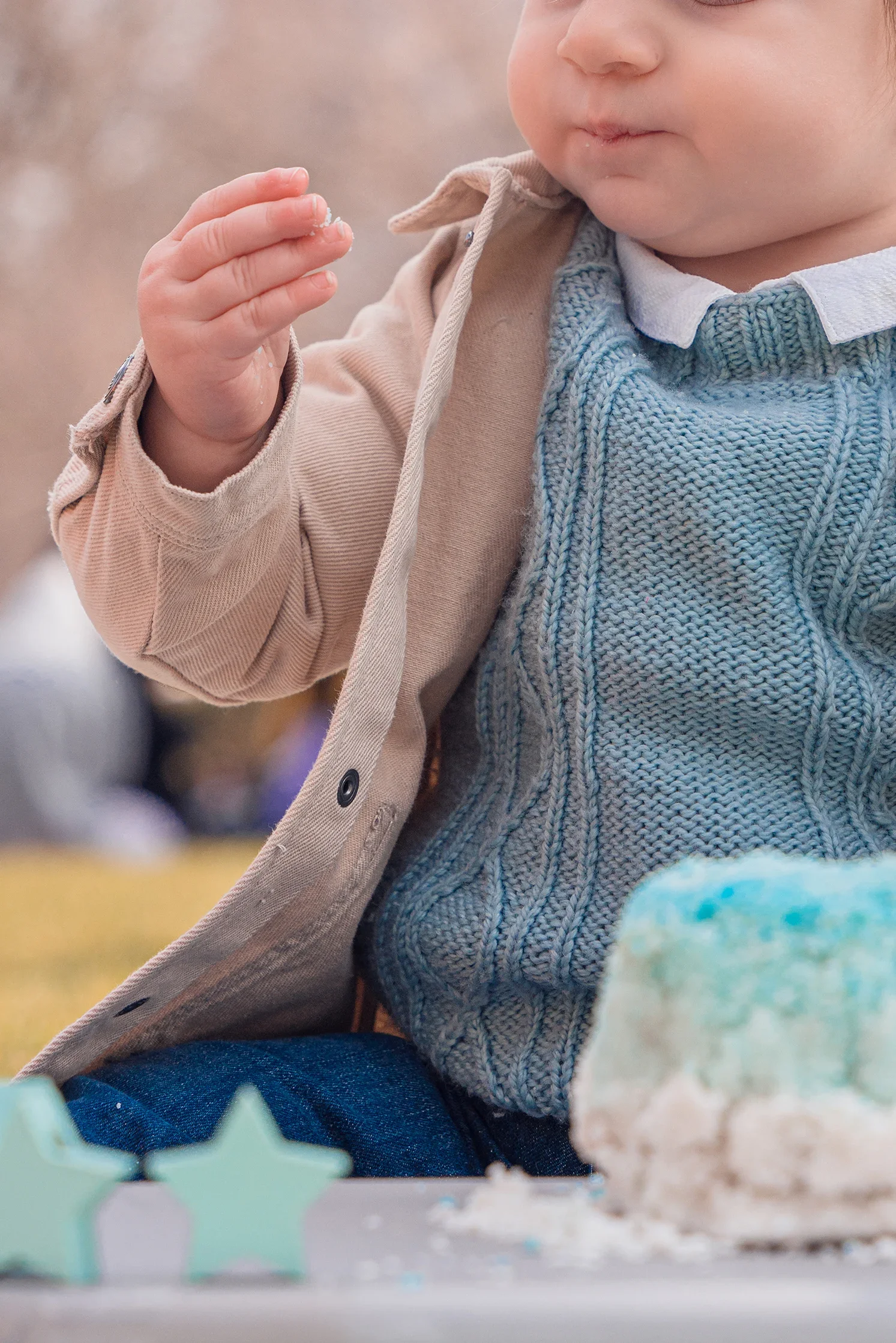 Au final, peu importe le stress du début ou le monde autour : quand bébé finit par s'attaquer au gâteau, la magie opère. C’est le moment où j'arrête de surveiller la lumière pour simplement capturer sa réaction.
