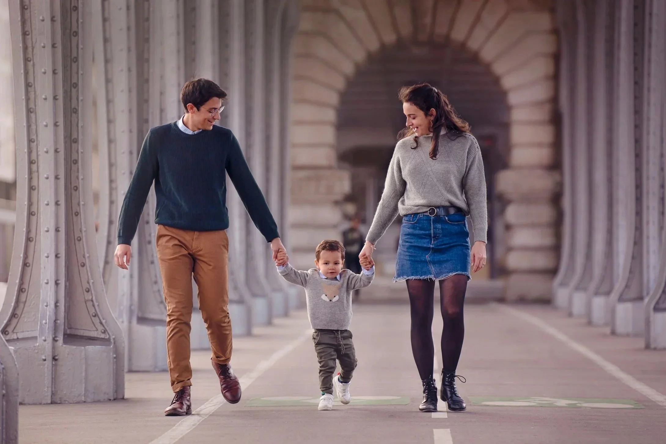 Exemples de séances photo famille en extérieur réalisées à Paris et en Île-de-France, notamment sur le pont de Bir-Hakeim, Parc Montsouris dans le 14e arrondissement, l’Allée des Cygnes et dans différents parcs parisiens.